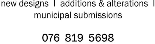 Design of new Homes and Additions & Alterations. Municipal Approval of Unauthorized Building Work. Sub-division / Consolidation & Rezoning of Erven.