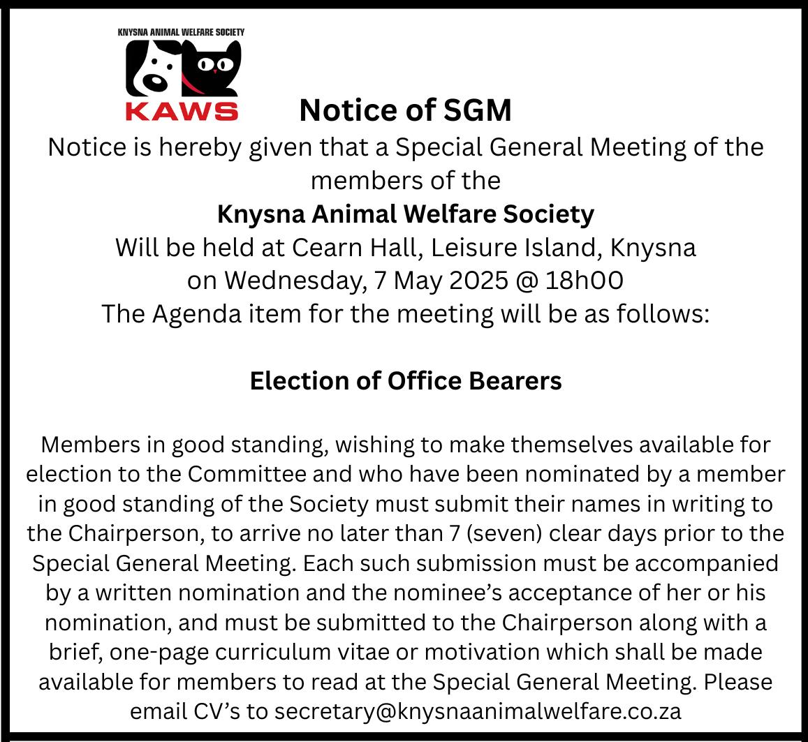 CALL FOR REGISTRATIONS: KNYSNA