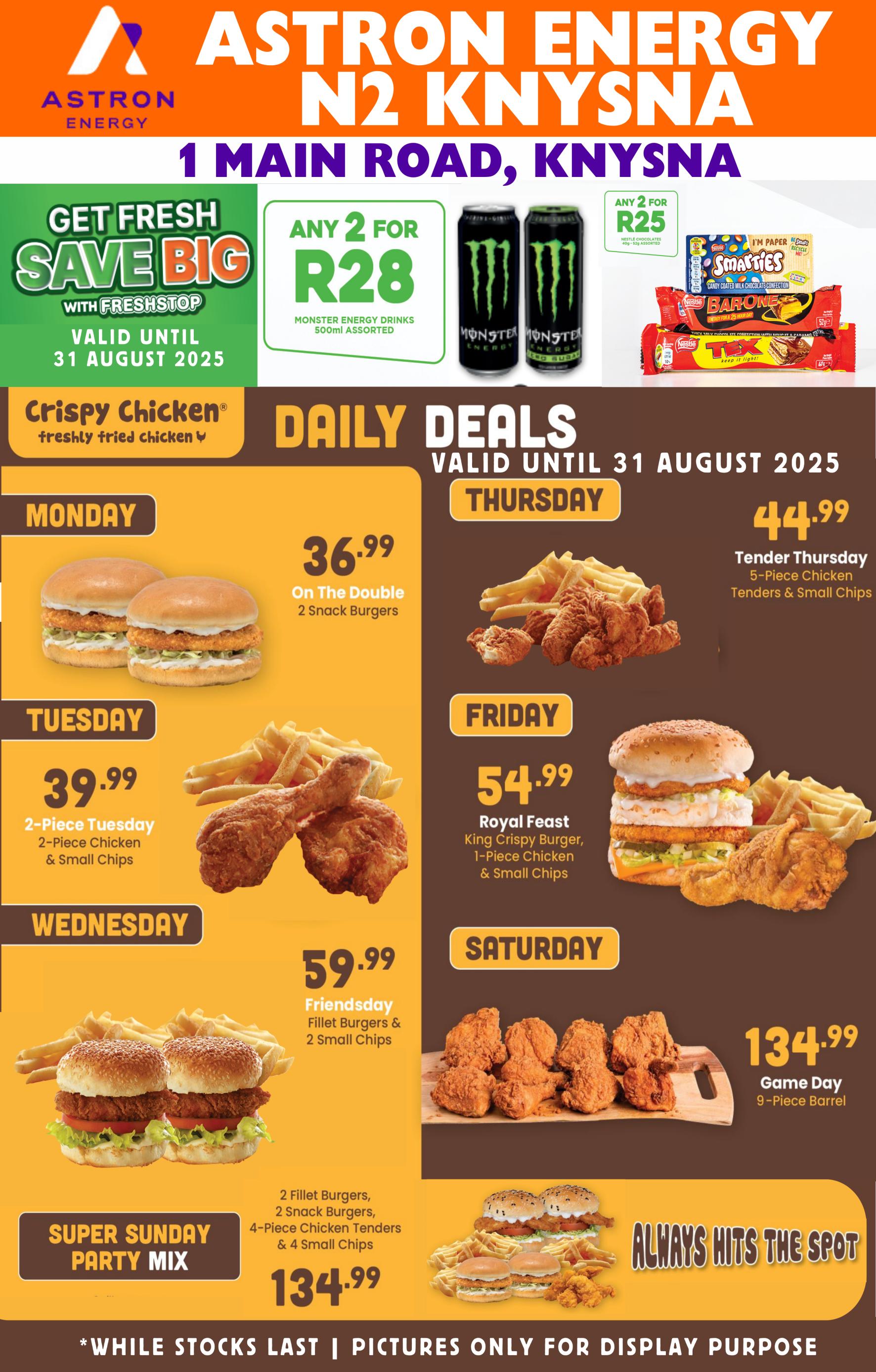 Find us on the N2 opposite the Keurbooms River turn-off 064 823 7935
