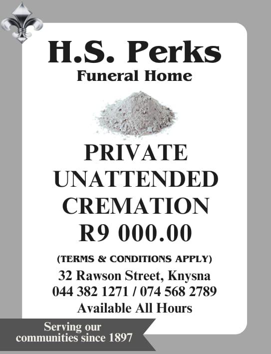 ALCOHOLICS ANONYMOUS meeting every Monday 6pm, Presbyterian Church, 14 Clyde Street, Knysna. Newcomers welcome. For help / enquiries contact0660652337