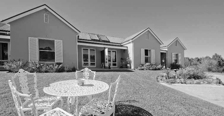 2 beds, 2 baths, 1 garage. IMMACULTE North-facing cottage. Clean lines, modern finishes, light and sunny. Granite tops, vinyl and tiled floors, woodburning stove in lounge. Sunny covered patio, beautiful waterwise garden, private courtyard. Full solar system and watertank. R3 575 000.