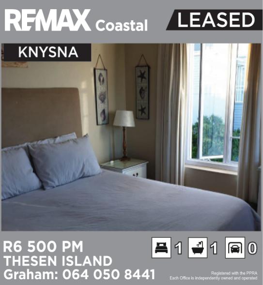 R1 250 000 for a 1 bedroom apartment in Knysna Central Noeleen 082 6688 373 at REMAX Coastal