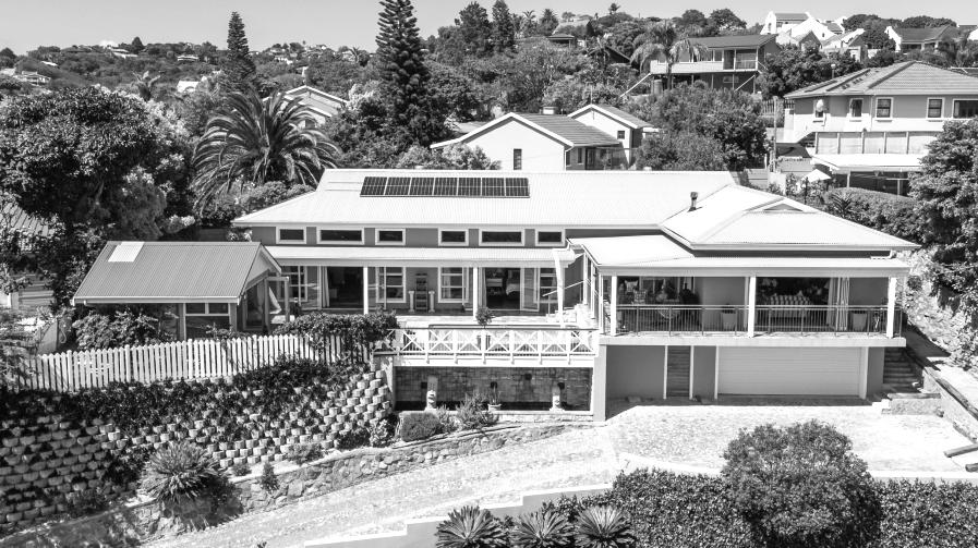 Exceptional home with grand proportions and lovely outlook over valley, hills and lagoon. High ceilings, skylight windows, aluminium stacking doors, wrap around verandahs and tall solid wood internal doors give this compact home a very spacious feel. Modern fittings and finishes throughout. Open plan kitchen with granite tops, Smeg stove, gas hob, large scullery cum pantry and laundry Beautiful pool enjoys all day sun. Built in braai, tanks plumbed to mains, large Solar system, fully enclosed and alarmed. Low maintenance property in immaculate condition.