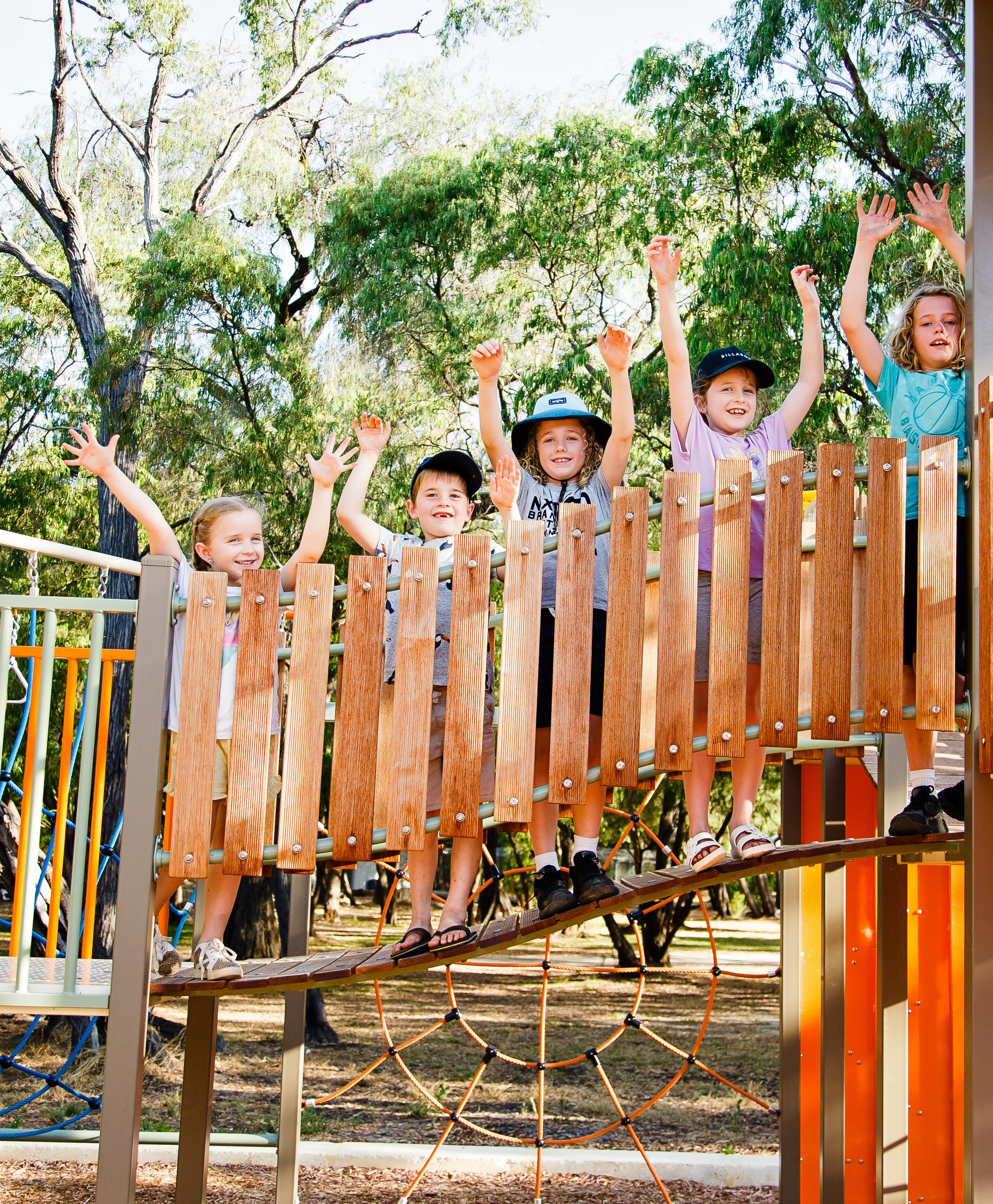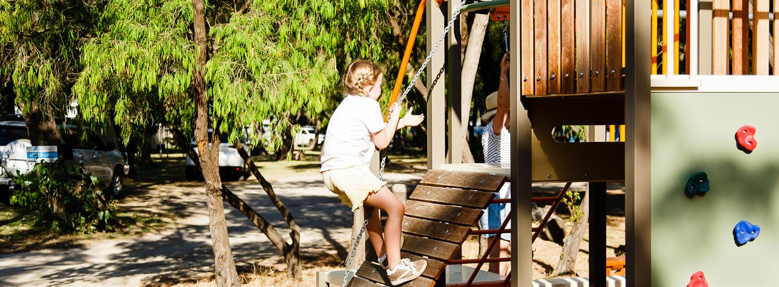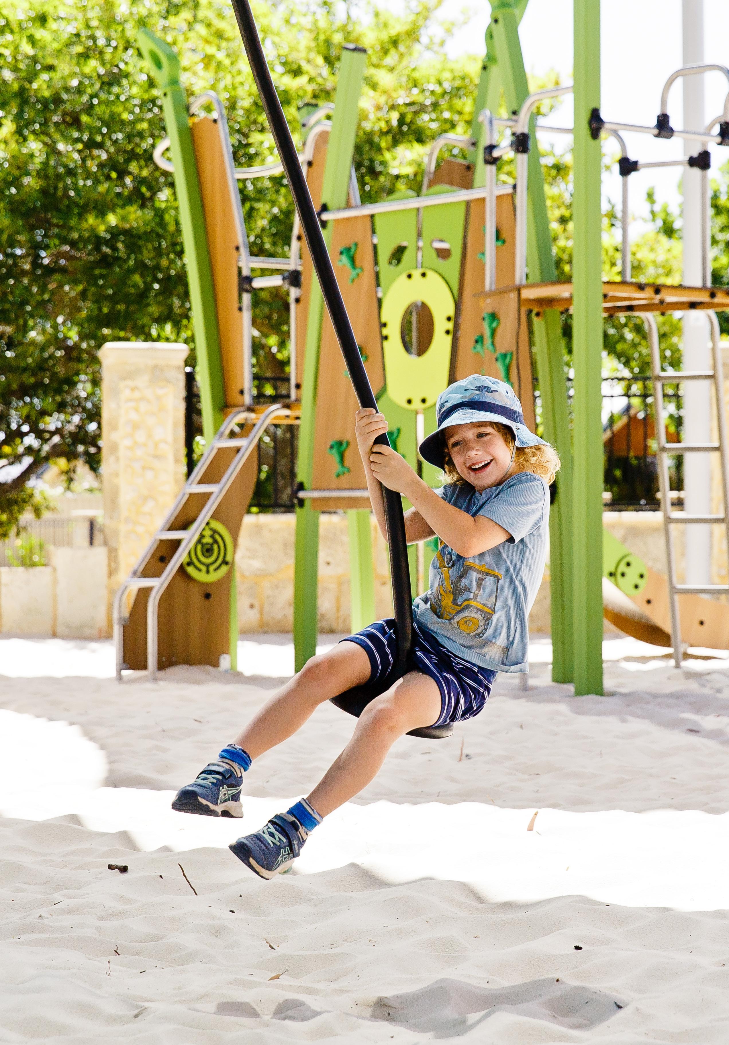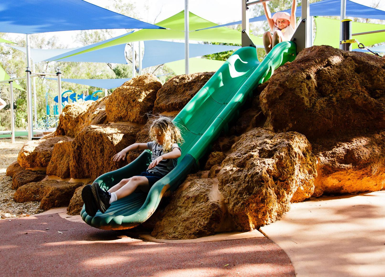 Estuary Hideaway is a beautiful place for families to escape and enjoy the natural surrounds of this tranquil holiday park. Surrounded by Paperbark and Peppermint trees this site sits on the edge of some of the most beautiful waterways in WA. The brief detailed the requirements for a playspace that caters for all ages, a good mix of play opportunities including sliding, swinging, upper body and imaginative play, all in harmony with the natural surroundings. Our Rustic Range compliments the natural environment using a colour palette inspired by the tones of Paperbark and Peppermint trees, earthy and warm colour tones, as well as the inclusion of composite timber to give the natural timber look without the maintenance of a natural timber material. This new space has provided a hub of imaginative and robust play to the Estuary Hideaway Holiday Park that will provide endless play opportunities for visitors for years to come.