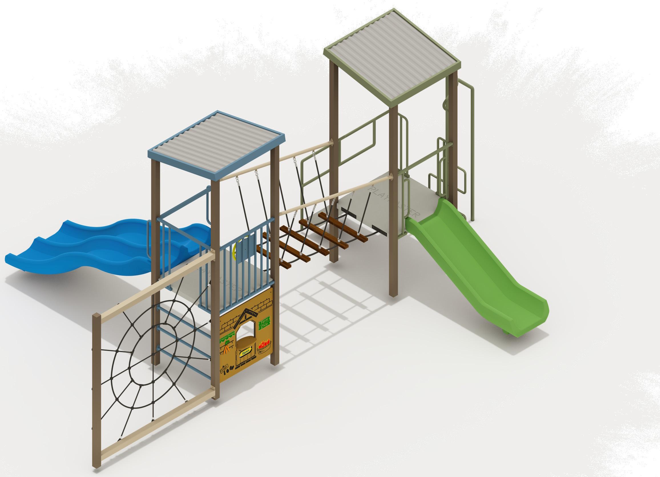 Our Rustic Range combines the robust, defined appearance of steel with the softer, natural texture of wooden componentry. This range maintains the proven stability and extensive choice of colours of a sturdy steel framework, and combines the raw, unsophisticated texture of wooden components to soften the playground’s overall appearance.