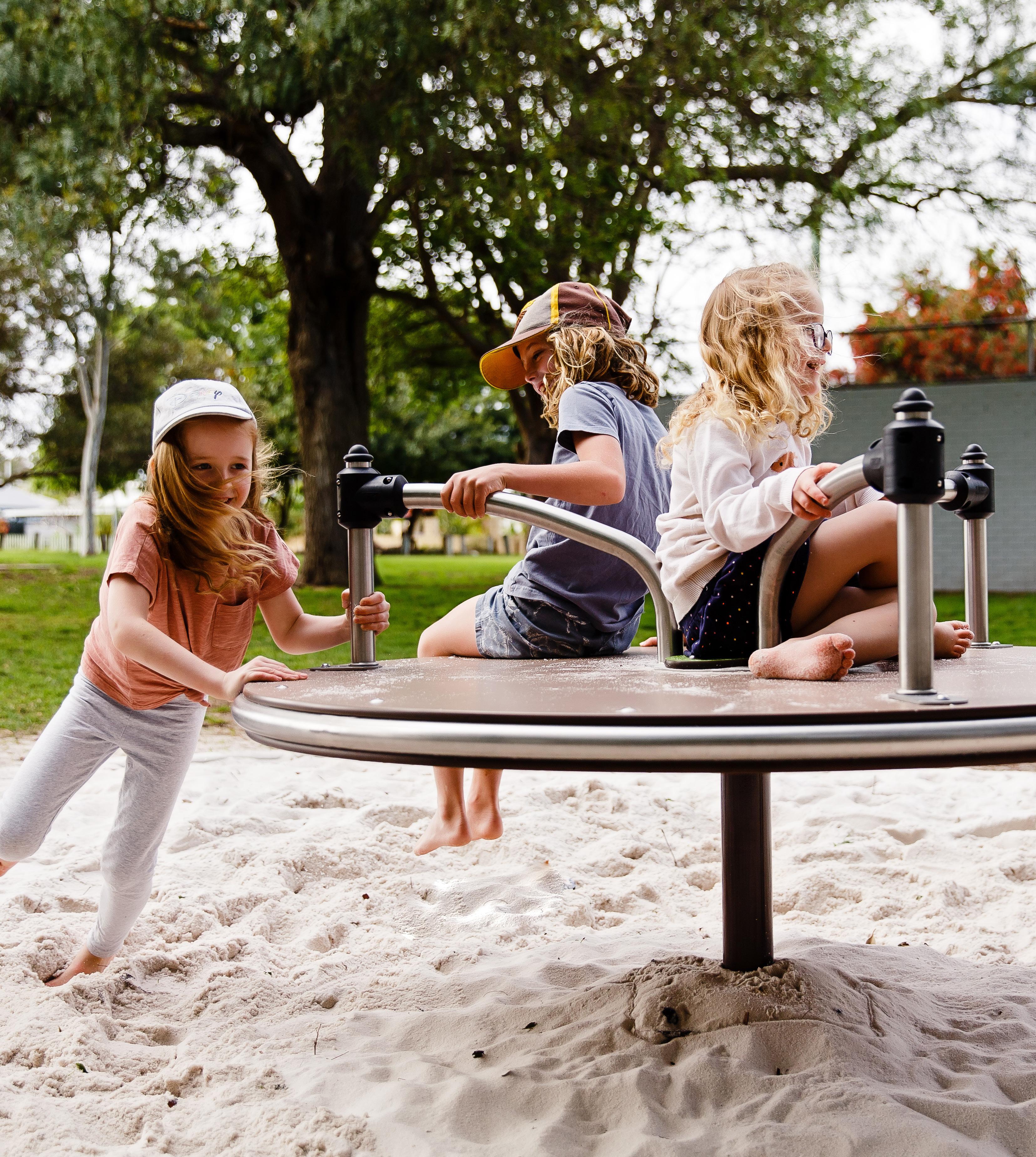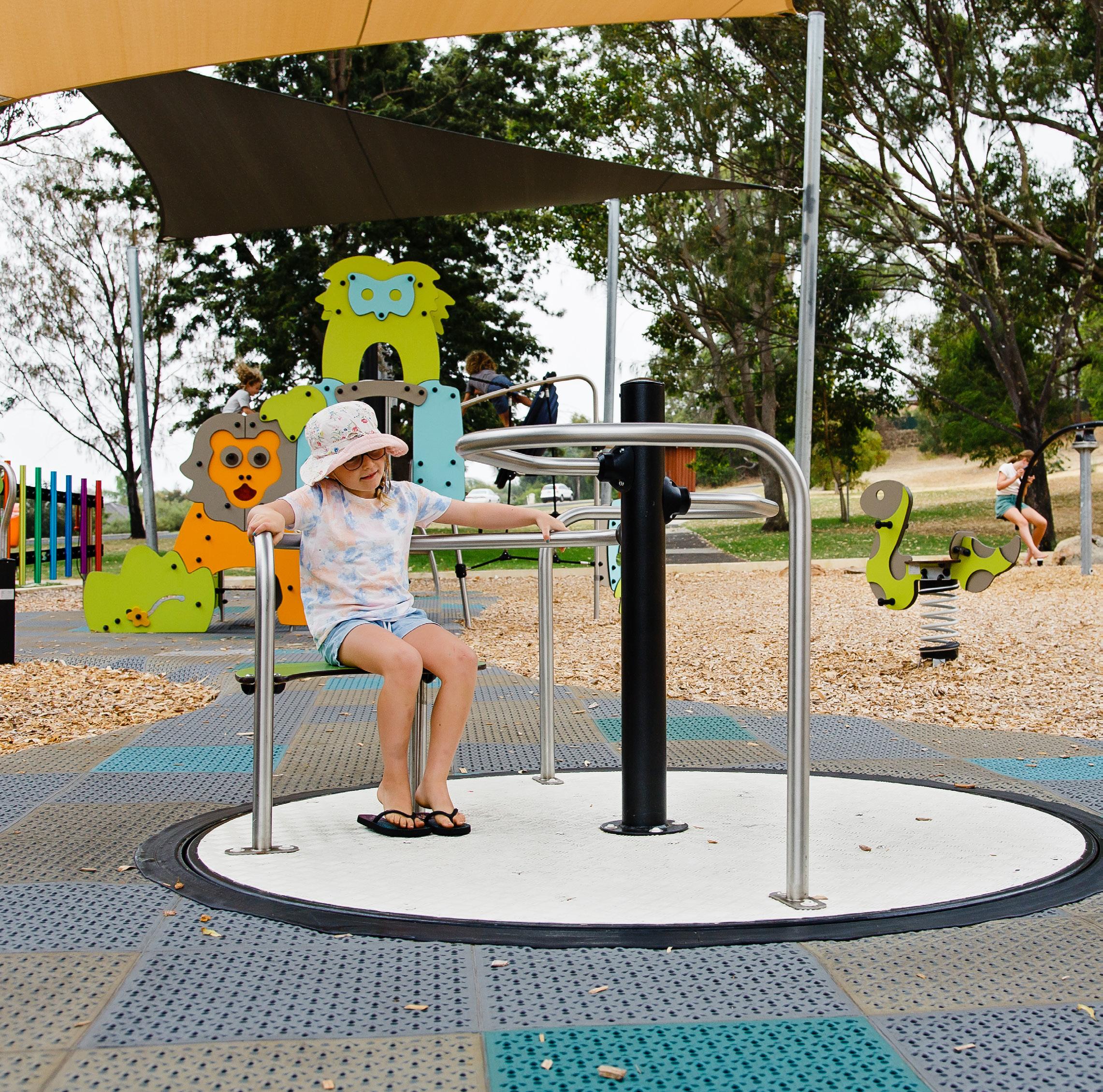 A persons sense of their body in space is developed by spinning, swinging, twirling, and rolling. Vestibular movement is considered critical to brain development so children feel confident and safe during movement activities, even if their feet are off the ground. Spinners & Carousels are a wonderful addition to playgrounds for this reason as well as being lots of fun and fostering inclusivity when matched with unitary surfacing and universal access pathways.