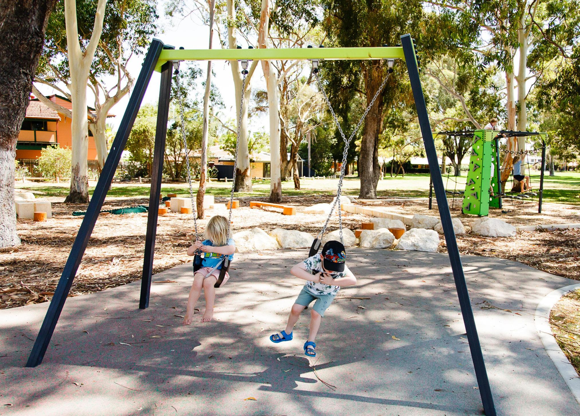 Nestled in amongst the leafy green trees of Kingsley sits Chelsea Park with an array of fun and exciting play opportunities. Warm up on the double swing and turbo spinner before moving onto the challenging Boxie Climber to test your balance, agility, and strength. The custom Willplay multiplay unit is packed with play value from classic with eye-catching pink slide takes centre stage in the sand pit whilst the Sand Play & Stencil table provide a tactile and sensory element to this dynamic playspace.