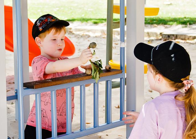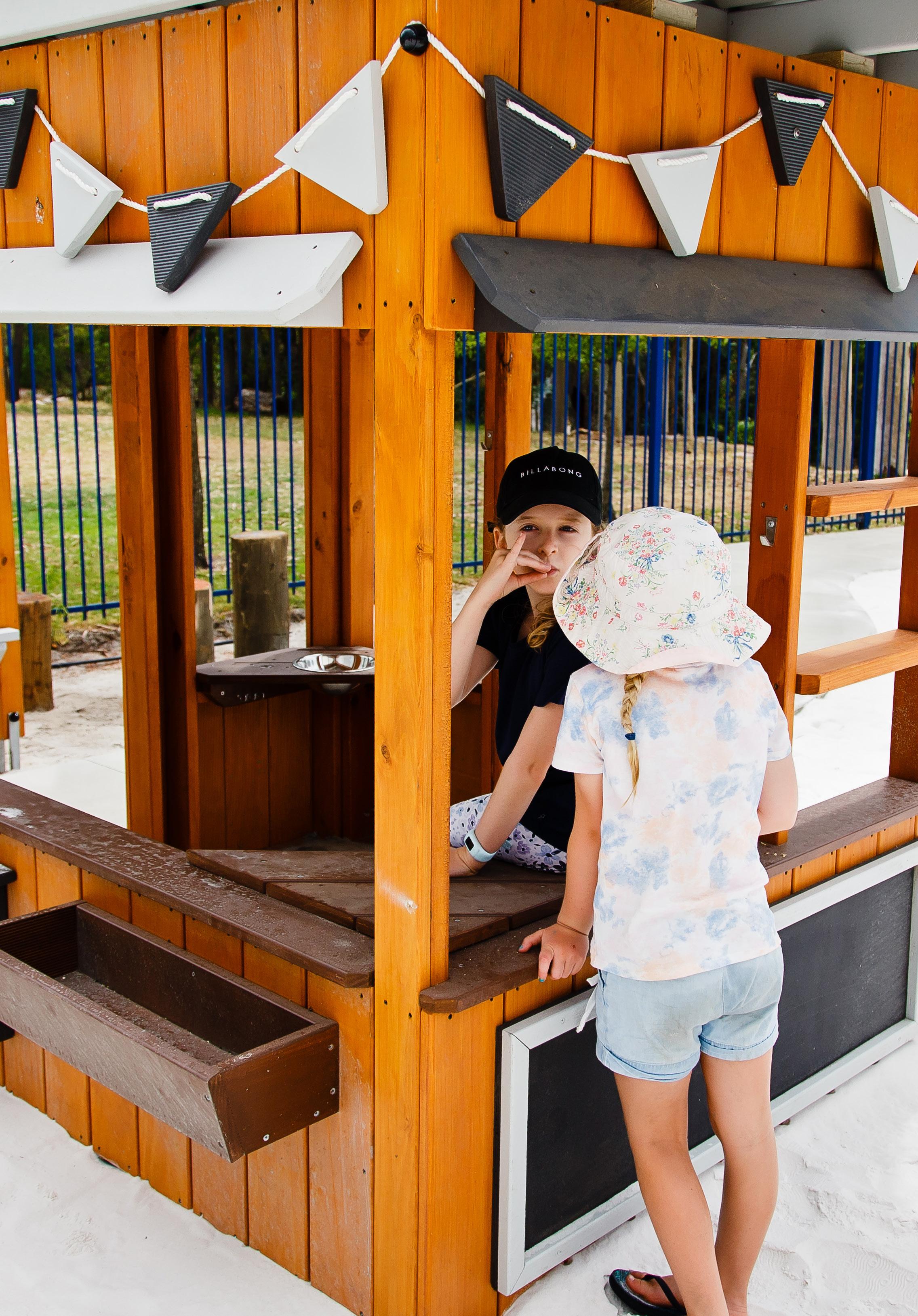 Our Early Childhood playspace design draws inspiration from the natural surroundings, featuring equipment inspired by lush trees, creek beds, native flowers and rolling green hills. Our goal is to engage children’s senses and foster exploration through diverse play experiences, that in turn, enhance their understanding of the natural world. Play elements such as the bushland-themed multiplay unit promote upper body strength, gross motor skills, and encourages social interaction. The drive through timber cubby ignites children’s imaginations as they create a roadside fruit and vegetable stall, sell ice-creams or make a bakery with every sand cake offering you could think of! This design caters for children of all abilities and fosters universal access to play experiences that provide tactile and auditory stimulation, spinning to stimulate the vestibular system, as well as role play and game play to enhance the development of oral language, cooperation and game strategy skills.