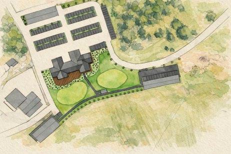 delvis döljs bakom en fond av sjöbodar, och gör dem i lantlig ladugårdsstil. Ekdungarna mot vägen behålls.