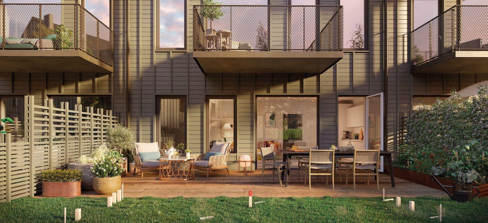 I NORDTAG FYLLER utvalda bostadsaktörer området med en blandning av bostadsrätter och hyresrätter med olika utformning. Sverigehuset har byggt Nordtag Lund med 63 bostadsrätter i form av radhus och lägenheter. Husen är i två våningar och placerade kring gemensamma gårdar som blir naturliga mötesplatser för de boende i kvarteret – något som främjar gemenskap och social hållbarhet.