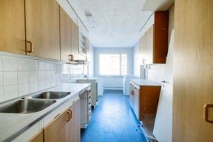 Under renoveringen blåstes hela insidan ut i lägenheterna och när hyresgästerna kom tillbaka var det till en helt ny lägenhet. Köken moderniserades och fick nya ytskikt, spis och vitvaror. Bilden överst t.h. före renoveringen, bilden under efter renoveringen.
