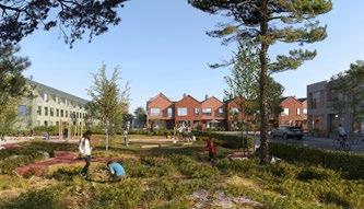 STADSDELEN UTFORMAS som en småskalig trädgårdsstad med mestadels småhus i olika former som tar tillvara platsens naturvärden. Området planläggs av kommunen i samarbete med HSB Bostad AB och Ikano Bostad.