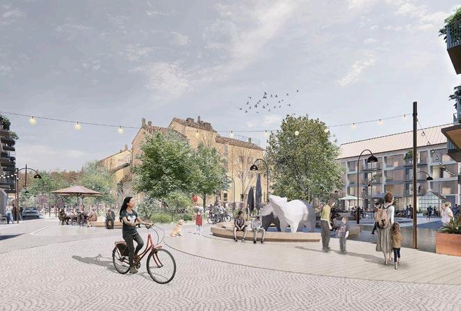 Längs Norrgrindsvägen löper nu nya tvåoch trevåningshus med butiker och kaféer i bottenplan. En bit fram öppnar sig ett nytt litet torg framför det nuvarande Bro centrum med uteplatser och butikslokaler. – Kommunens vision är att Bro ska gå från en tätort med förortskaraktär till en mer småskalig och trivsam stadsmiljö. Vi kommer att utöka den kommunala servicen och forma miljön så att det blir mer liv och rörelse dagen igenom, säger Susanna Evert, som är projektchef för Omdaning Bro på Upplands-Bro kommun.