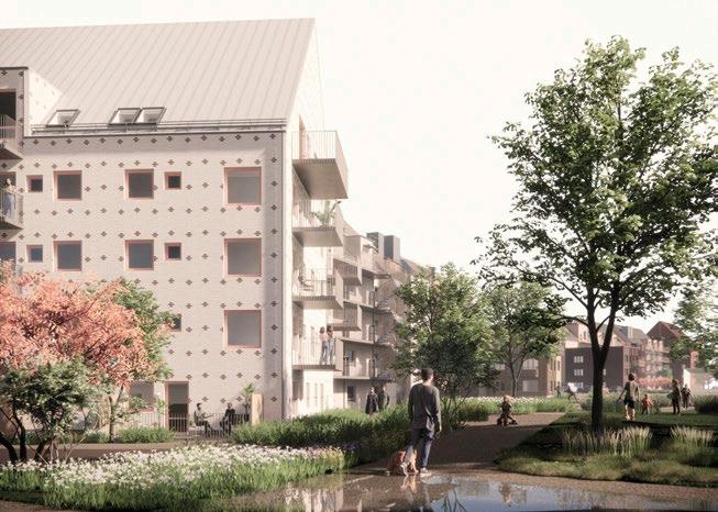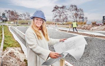 trä och puts. Sadeltak med lutning ger byggnaderna karaktär och skapar också förutsättningar till mysiga vindsvåningar. – Storleken på bostäderna varierar. Här finns till exempel den mindre lyan för den som flyttar hemifrån. Med nya resecentrum precis runt hörnet ges ju faktiskt unga förutsättningar att bo kvar i Vellinge, men ändå ha en närhet till Malmö som är som att bo i stan. Men här finns också de lite större bostäderna för familjen eller de som har barn hemmaboende varannan vecka. Bostäderna har egna utemiljöer, de större lägenheterna har två för att möta olika väderstreck, säger Josefine.