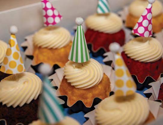store candles, cards, and gift items, making it a one-stop shop. Orders can be placed in person, via phone, online or through third-party delivery apps, including Grubhub, Doordash, Ubereats and EZCater. Unless it’s a significant holiday, most items can be ready in an hour or less. The company recently launched an app connected to the new loyalty program, allowing guests to earn “Joy Points” with every purchase to redeem in the app or the bakery.
