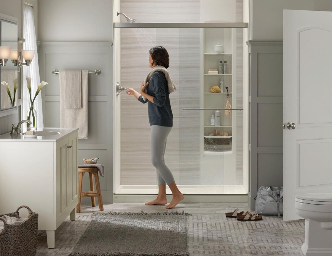 Popular Re-Bath projects include shower conversions for aging and accessibility solutions. To make bathing safer for those individuals, Re-Bath will remove the tub and install a walk-in shower in its place with a low threshold configuration. Other remodels focus on updating a shower or tub design for those who want to enjoy something luxurious and beautiful. In addition, flooring, cabinetry and countertops are available. “We love to hear from people and help them create the bathroom of their dreams,” relates Vorster.