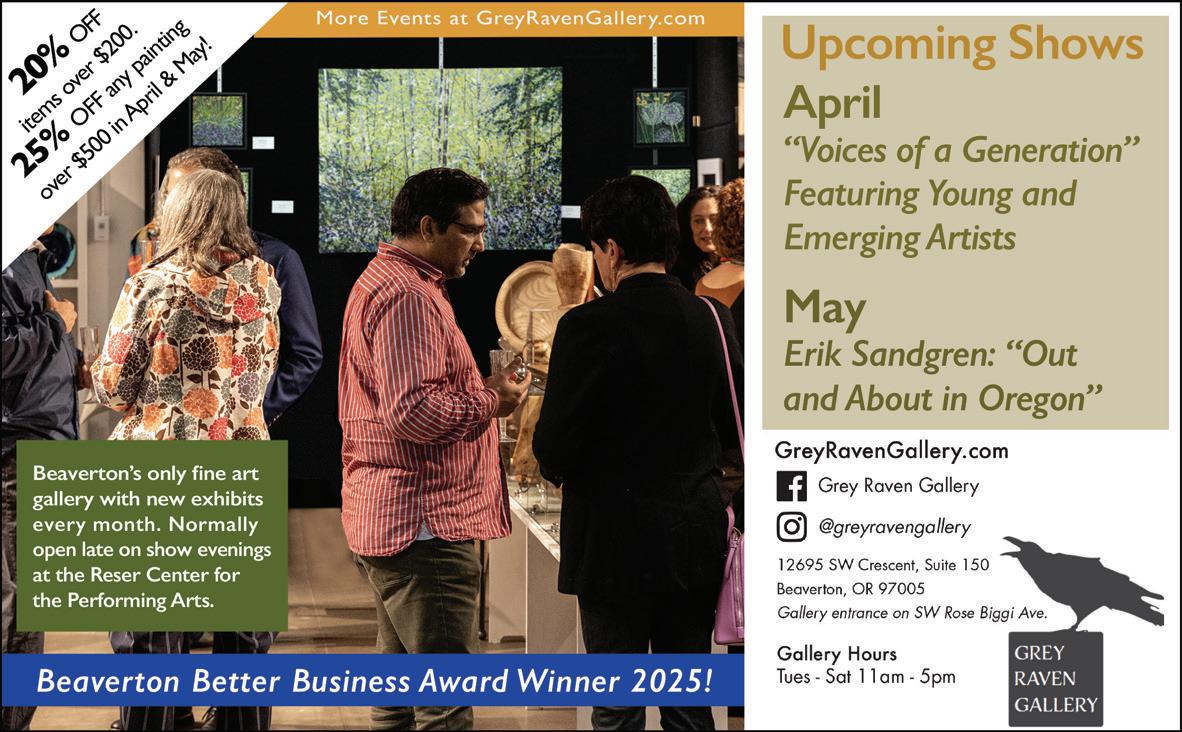 So make some time to peruse the collection at Grey Raven Gallery as the creative space carves a cultural niche out of its Beaverton location. Visit them online at greyravengallery.com