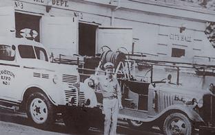 1946 Beaverton Rural Fire Protection District is established. Chief Archie Olson stands in front of the First Street Fire Station with the Beaverton Rural Engine No. 1, Beaverton Fire Department Engine No. 2 (1935 Chevy) and Tanker No. 3 (1928 Graham Truck with a 600 gallon water tank).