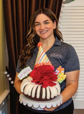Holidays are the busiest for Nothing Bundt Cakes, and they come with themed varieties and decorations. “It’s a special time, and we’re excited to celebrate with our customers,” Carla says. Pumpkin Spice is back in action as the featured flavor, and seasoned guests can attest to the hearty pumpkin flavor with hints of nutmeg and cinnamon. The “Taste of Autumn Collection”’ of pop-up Bundlet flavors includes Chocolate Toffee Crunch and Caramel Apple Cider, which pair perfectly with hot beverages, cozy scarves and sweaters.