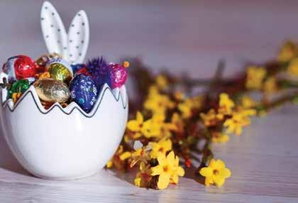 Fast forward to the 19th century, when European chocolatiers began making chocolate eggs to celebrate Easter. Nowadays, Easter is the second best-selling candy holiday in America a er Halloween. e largest Easter egg ever made was over 25 feet high and weighed over 8,000 pounds, made from chocolate and marshmallow, and supported by an internal steel frame. Another egg-shaped candy is the jelly bean, rst popular for Easter back in the 1930s. Over 16 billion jelly beans are made in the U.S. each year for Easter. Over the last decade, the marshmallow Peep has been the best-selling non-chocolate Easter candy. Created in the 1950s, the original Peeps were handmade, yellow marshmallow chicks, and other avors and shapes were introduced later, including chocolate mousse bunnies!