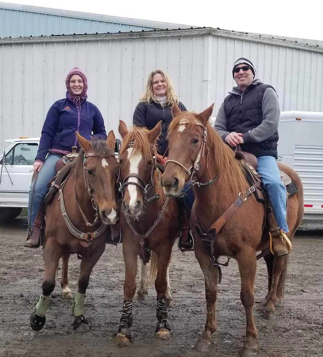 LEFT: Laura Venneri (middle) rides with her husband, Brett, and her daughter, Ashley. ABOVE: Laura and Brett stand proud with their son, Tyler, now a medic in the Army.