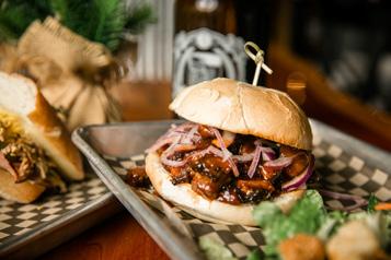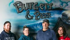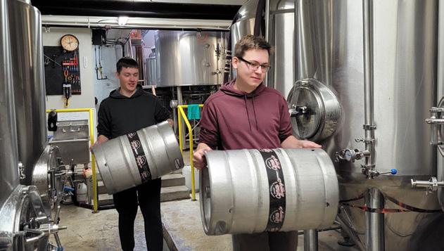 IPA, and a coffee nitro stout Graybill describes in taste and texture to a Guinness “but with coffee.” The brewery also crafts a Vienna lager, a brown ale, a hazy IPA, a couple Oktoberfeststyle beers, and an Irish red ale called The Big Red One, a nod to Duensing’s military service — look for the bullet tap handle. No matter