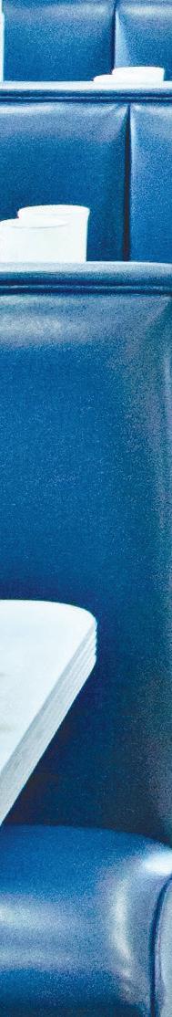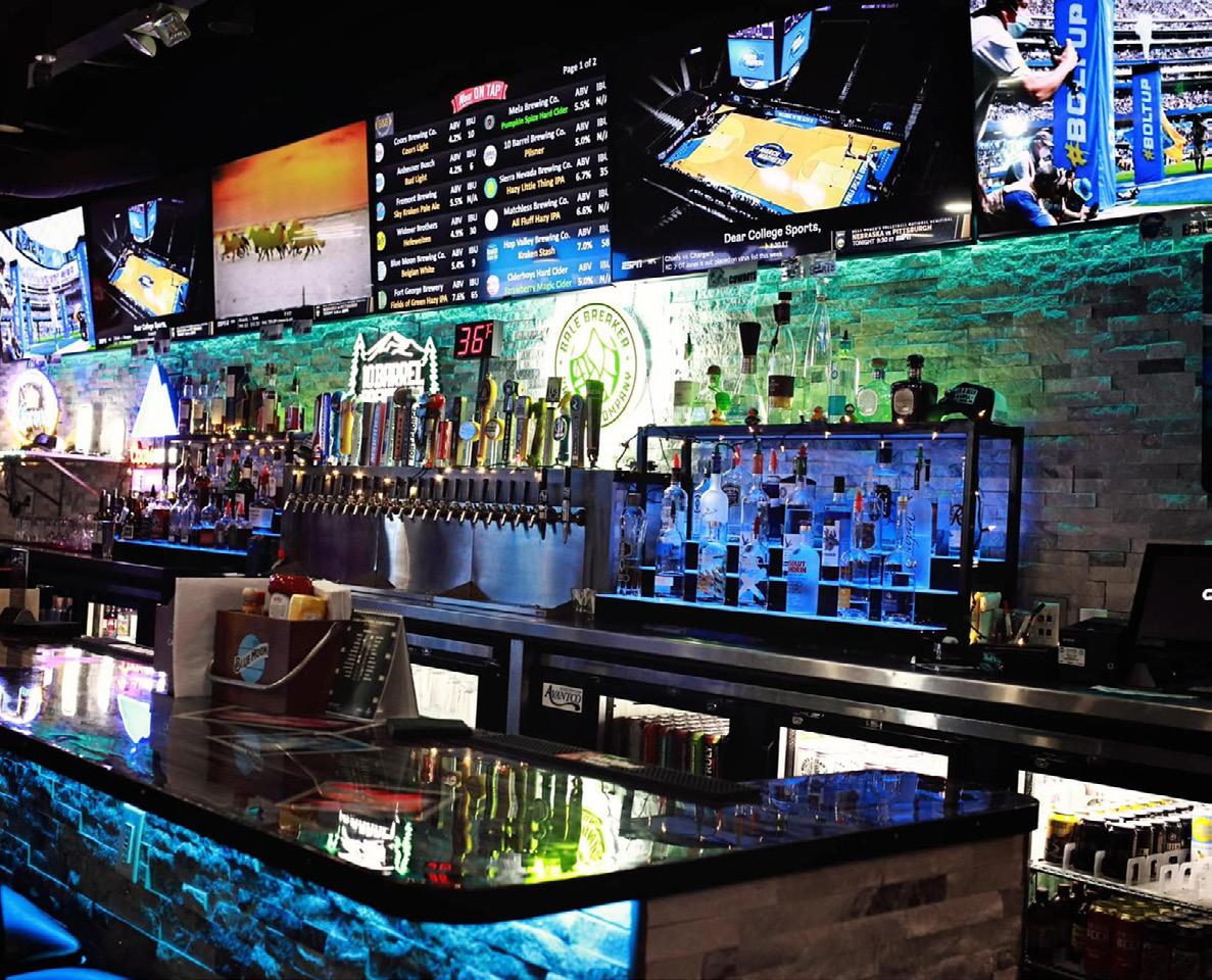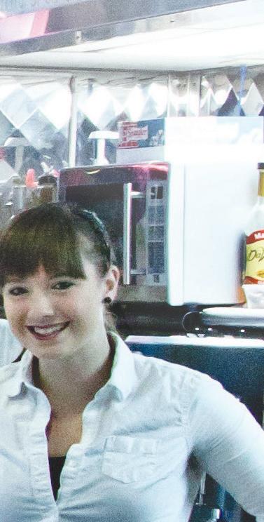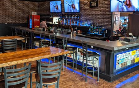 describes the design as industrial, a vibe that’s just right for the 21-andolder customers. The atmosphere of the adjacent restaurant feels like a New York pizzeria, complete with white subway tiles and cool marquee lights.