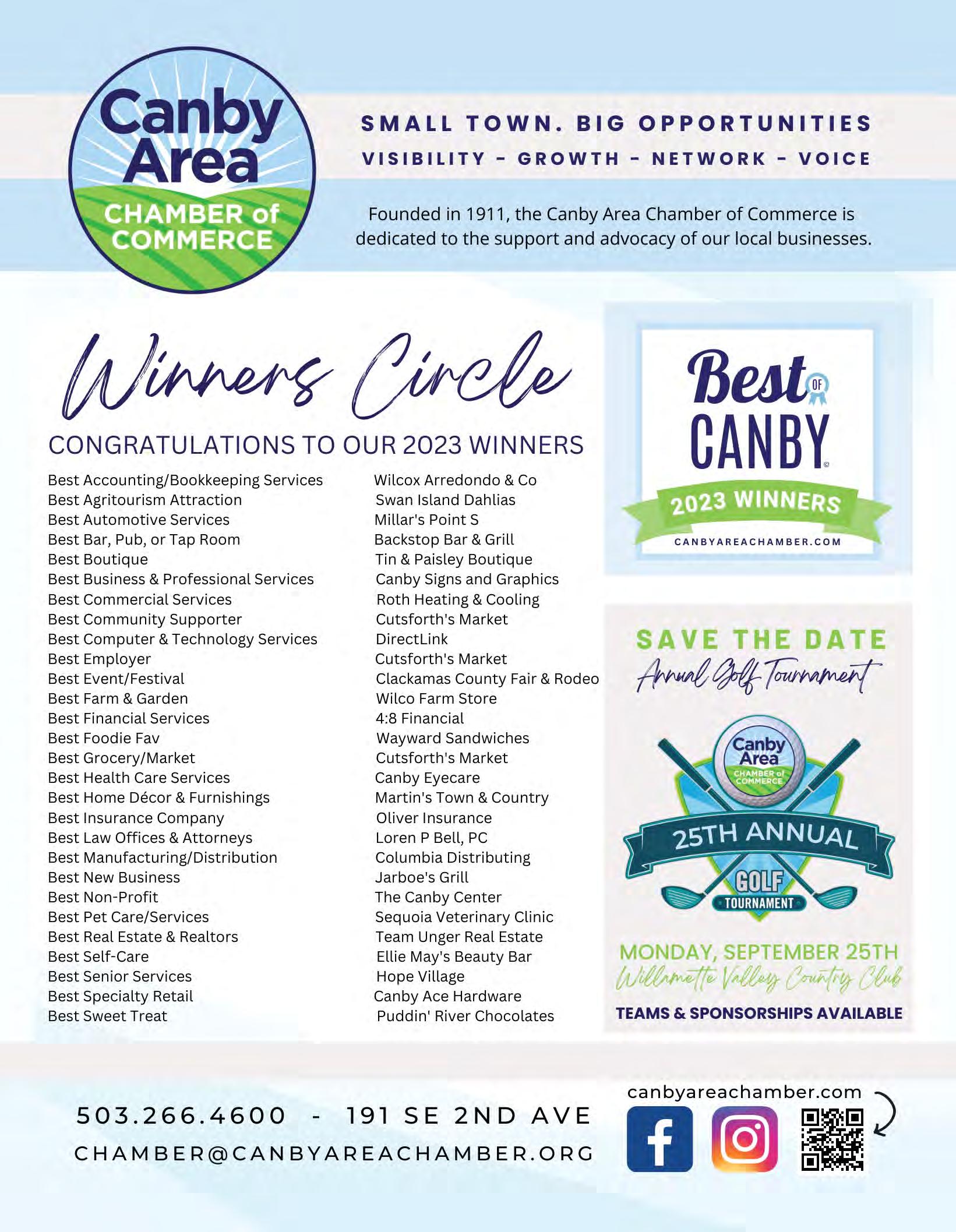 P.S. If your business services local residents, give me a call at 503-825-2111 to see how partnering with us will put you in the homes of everyone in Canby and Aurora.