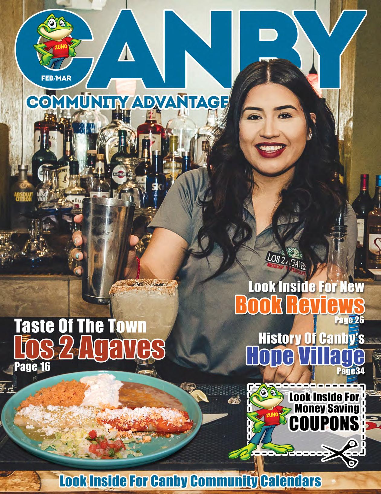 We are very excited for all this year has in store, and especially to continue our wonderful relationship with the Canby community. This issue features two local businesses: a delicious Mexican restaurant that will make your mouth water called Los Dos Agaves; and Active Water Sports that is brand new to the community, showcasing over 150 new and used boats, wakeboards, and water toys. As the weather warms up and spring appears, knowing what is happening in your community is important so follow our community events. Culture is important too, and every issue we are lucky enough to have a spotlight on local artists. This month we are focusing on musicians Rebecca and Ray Hardiman. Celebrate Valentine’s Day by cooking a delicious Brown Sugar Garlic Flank Steak. You’ll find the recipe on page 44. As always, you’ll also find lots of great deals for your favorite places around town. We look forward to showing you our next issue in April.