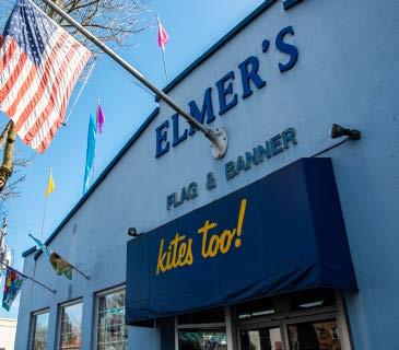 For All Your Flag, Flagpole, Banner & Kite Needs! WeOffer: • A huge selection of decorative house banners and garden flags • Kites for the whole family 1332 NE Broadway, Portland 97232 elmersflag.com • 503.282.1214 NEW HOURS: M-F 8:30AM - 5:30PM SAT: 10:00AM - 5:00PM SUN: Closed An American Flag Store Family and locally owned since 1963 20% OFF ANY IN-STORE PURCHASE OF $60 OR GROUNDFREEMORELEVELINSPECTIONOFANEXISTINGFLAGPOLEMust present offer. Expires 12/15/22 • Free lifetime fly-end repair for flags bought from us • Custom flags and banners for your business or special occasion