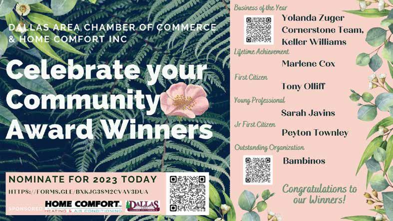OREGON HISTORY The Tater Tot BUSINESS SPOTLIGHT Willamette Valley Fiber BUSINESS SPOTLIGHT Budget Blinds LOOK INSIDE FOR AD & ARTICLE JASON AND SANDY THORNTON OWNERS EVERYTHING DALLAS + A LITTLE BIT MORE FEB/MAR 23 COMMUNITY ADVANTAGE MAGAZINE DALLAS