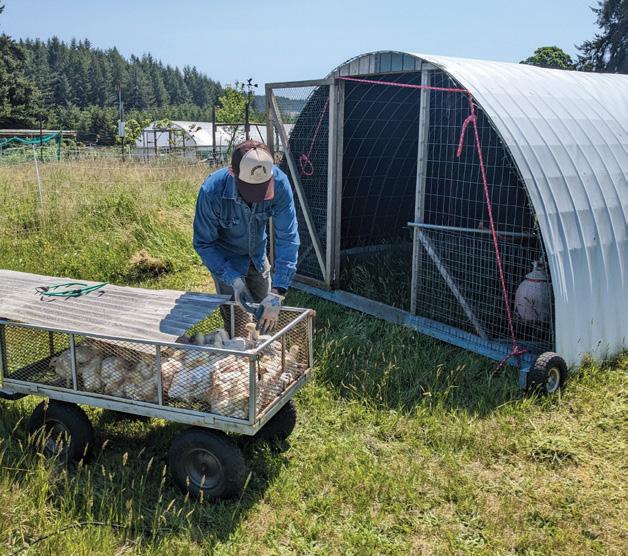 Birdsong Farm is home to humanely raised small livestock that live quiet, comfortable lives with love, space to free range, and plenty of extra treats. Free-range duck eggs are available for purchase year-round, and they raise and sell a large batch of meat chickens once a summer. The chicken is processed right on the farm. “We do it ourselves, under the Oregon Poultry Exemption,” Miranda explains. “Customers come out and pick them up fresh that same day. They’re pasture-raised and absolutely delicious.” The farm formerly sold duck and rabbit meat but had to scale back for multiple reasons, including losing their flock of