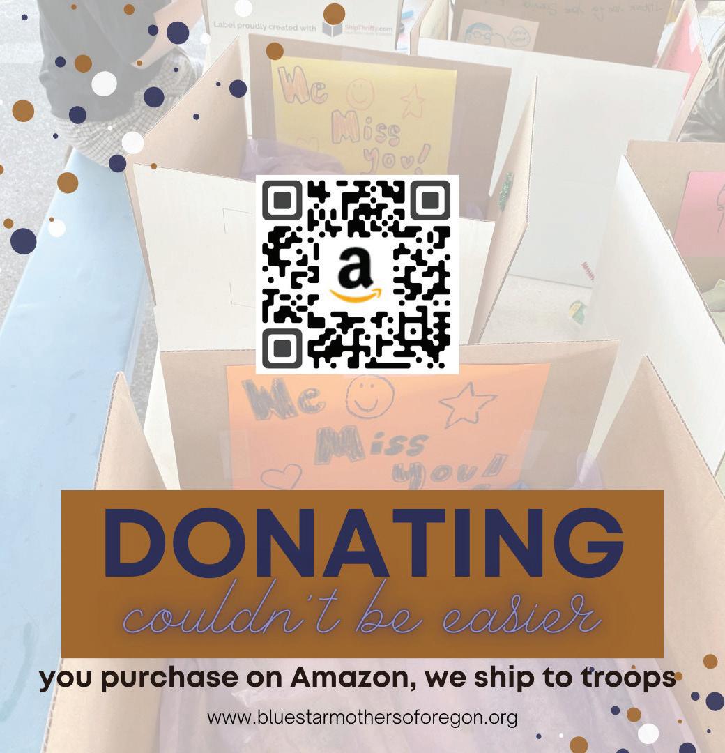 Blue Star Mothers’ Oregon chapter has worked frequently in the past with other groups like the Veterans of Foreign Wars, the Junior Reserve Officers’ Training Corps, and several local churches to raise money for these care packages, which they send twice a year: once during the summer and another around Christmas. They’ve previously held fundraising events at Columbia Presbyterian Church in Vancouver, Washington, and Pomeroy Living History Farm in Yacolt; they are still finalizing where this summer’s fundraising event will take place.