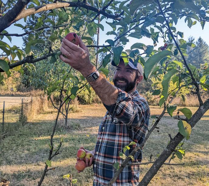 Andy and Miranda farm with biodiversity in mind and they’ve worked hard to create a habitat on their property for all plants and creatures. “Over the years, I’ve put in lots of native plants, fruit trees, and assorted blooming things, and now we’ve got a huge population of native bees and birds that come to visit every year,” Miranda says. “Nurturing biodiversity and doing my part to help the ecosystem is most important to me.” Queen Bee Apiary, a company out of Corvallis, also keeps a bee yard on their pasture every summer.