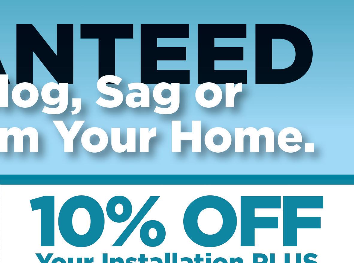 TRUSTED HVAC SERVICES IN VANCOUVER SINCE 1983 The comfort air team is passionate about serving our customers and community. We are proud to provide excellent service to everyone we encounter and we hope to work with you for years to come. 0% interest financing up to 72 months (OAC, see terms & agreement through WF) 7504 NE 182nd Ave. • Vancouver 360-836-4953 www.ComfortAirNow.com License #COMFOAI848BN Must present coupon. Not valid with any other offers. Expires 8/15/22 10 % off ALL DUCT CLEANING including a FREE dryer vent cleaning Must present coupon. Not valid with any other offers. Expires 8/15/22 $ 300 off A/C Installation Must present coupon. Not valid with any other offers. Expires 8/15/22 TUNE UP SPECIAL Only $ 159 REG. PRICE $259 Must present coupon. Not valid with any other offers. Expires 8/15/22 $ 600 off Furnace and A/C or Heat Pump System