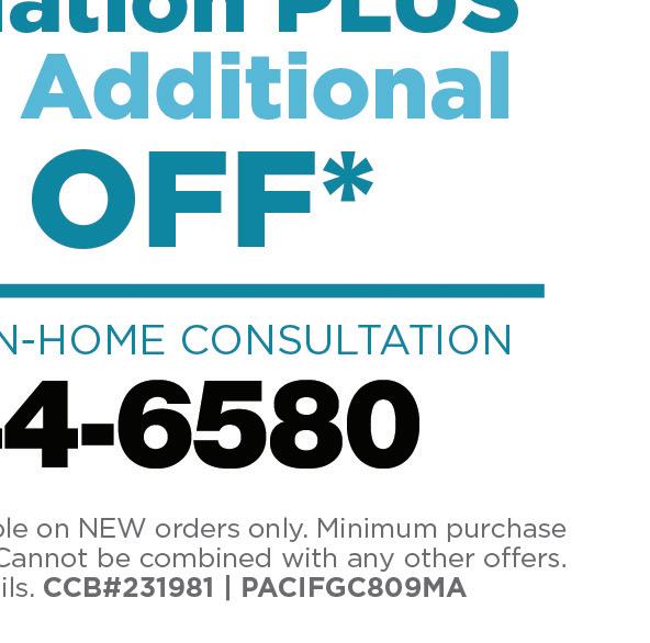 R16 COMMUNITY ADVANTAGE MAGAZINE Step into a shower enclosure that was designed for you and your routine. From the shower walls that reflect your style, to the showerhead that delivers an indulgent drench, your new custom walk-in shower design is ready and waiting. CALL NOW FOR A FREE IN-HOME CONSULTATION 503-744-6544 ALL OFFERS EXPIRE 6/30/22, Available on NEW orders only. Other restrictions may apply. Cannot be combined with any other offers. Visit Pacificbath.com for complete details. OR#213202 | WA#PACIFICBC810JJ CCB#158152 WINDOW & PATIO DOOR SCREEN REPAIR & REPLACEMENT STORM & SECURITY DOOR INSTALLATION SERVICING THE GREATER PORTLAND & VANCOUVER AREA CALL FOR A FREE ESTIMATE | 503-342-0595 | www.KraftScreens.com Motorized Screens Screened in PorchesRetractable Screens 10 % OFF ON ALL PRODUCTS & SERVICES EXPIRES 8/15/22 Minimum purchase of $150 required. One coupon per customer, per household. Not valid with any other offers. Must be presented at time of measurement.