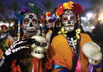 What makes the Day of the Dead so special, however, is not just its pageantry, but a continual connection with loved ones that transcends the finality of death. Families gather in cemeteries, often staying overnight, to clean and decorate graves, share stories and celebrate with music and food. Frequently, entire communities join together for processions and parades, where everyone is invited to join in the festivities.