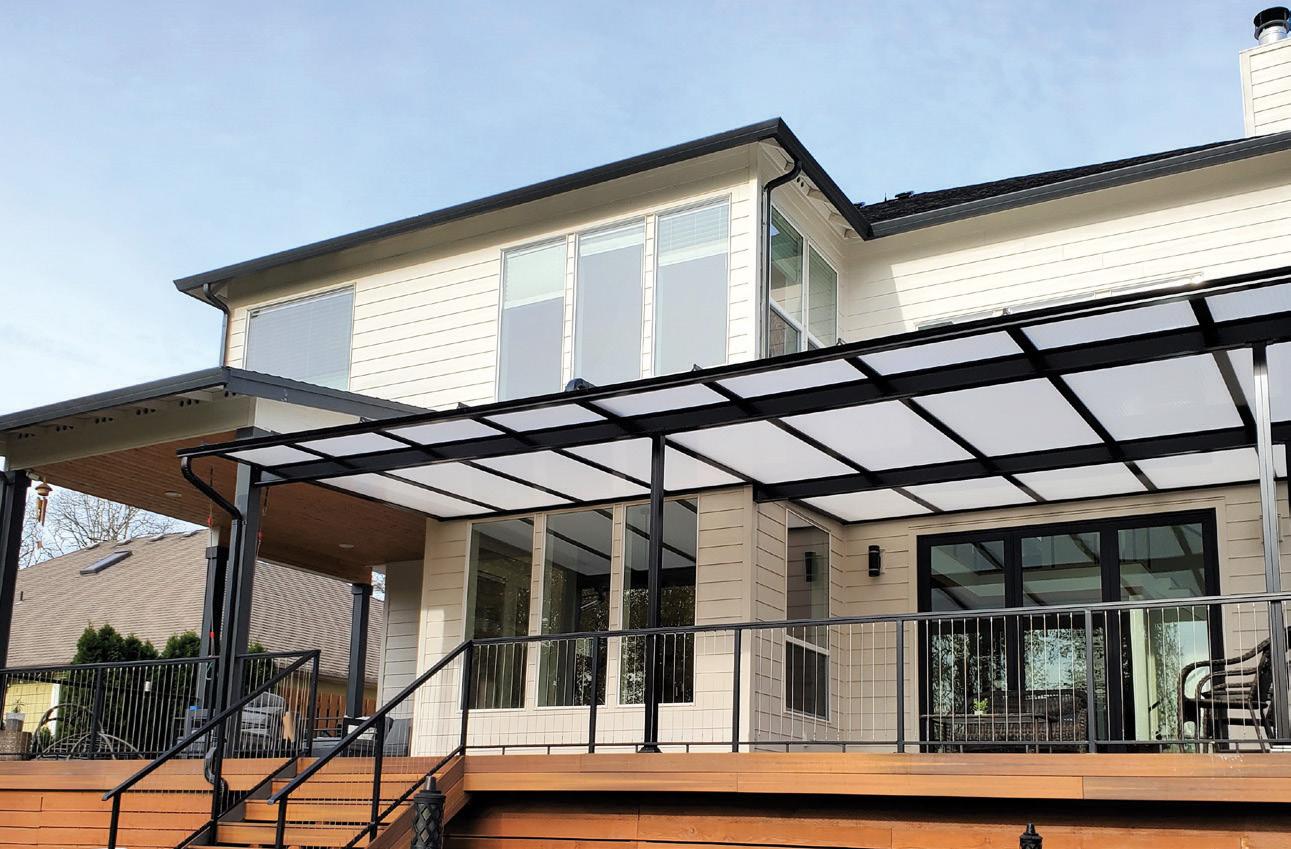 In addition to integrated custom patio covers and composite, low maintenance custom decks, Pioneer specializes in Acrylite patio cover systems. Acrylite patio covers are one of the most innovative systems in the industry and far outperform any other patio cover product on the market. “They’re such a cool product,” says Jennifer. “They’re a win-win for the client and the company.” Proven to block harmful UV rays, Acrylite covers offer an attractive light diffusing surface which emits soft uniform light even on overcast and rainy days. Acrylite systems also hold up to snow loads, high winds, driving rain and intense heat. A perfect solution for the Pacific Northwest’s everchanging weather!