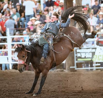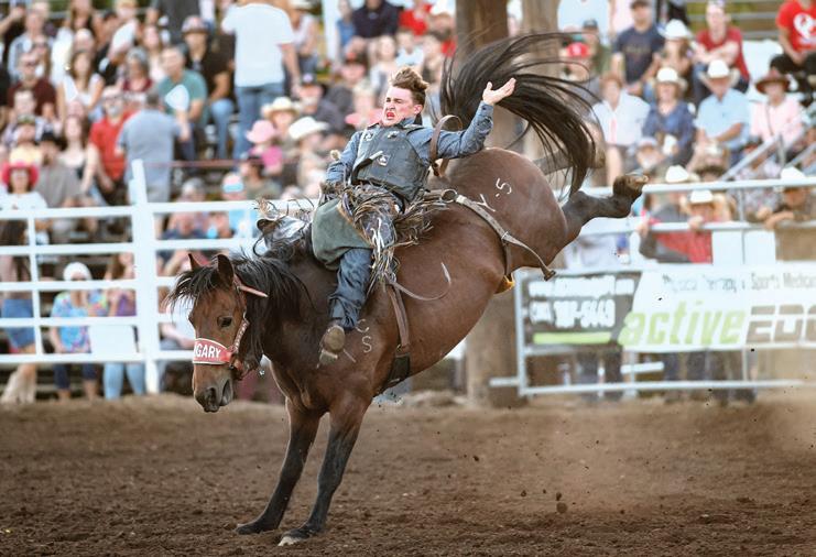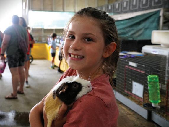 raise and the community’s handiwork on display for everyone to enjoy. I hear the sounds of kids laughing and screaming on the rides, cows mooing, pigs squealing, bleating lambs and goats, and whatever noise cavies make. Music fills the air from the stage, alongside the auctioneer and rodeo announcer. Friends are telling stories and joking around. I close my eyes