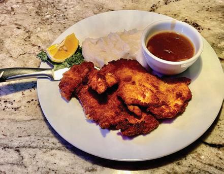 Guests can also select from tasty appetizers, soups and salads, sandwiches and pastas. Kris sprinkles a few Polish dishes throughout the menu, like chicken schnitzel and pierogies, which are dumplings stuffed with potatoes and cheese and served with sautéed onions. Desserts are primarily homemade, with several delectable choices like hot apple crisp and lava cake. A kid’s