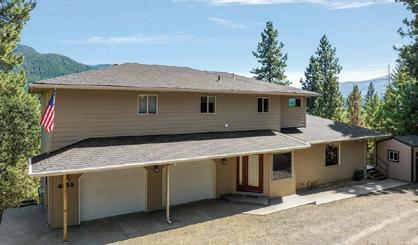 Split Level Home, Blocks from Downtown Sloping backyard with spring fed creek. Main level: 3 bedrooms, 1 bath, kitchen, dining and living room. View of river is seasonal although there are peeks from two bedrooms. Lower level: large open bonus room,1 bath/laundry and two car garage.