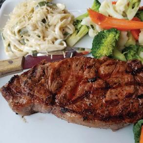 Serving the best steak is a huge priority at The Mesquitery. They make most of their own cuts of Black Angus beef, and the menu includes New York, Porterhouse, Top Sirloin, Prime Rib, Beef Cheeks and Ribeye. All steaks are mesquite-seasoned and cooked to perfection on an open-flame grill that guests can view as they enter the restaurant or even from their table. More recently, Kris has been offering dry-aged cuts. “The flavor profile is amazing,” he says. “It’s more common in fancy steakhouses like in Vegas and Los Angeles, and they charge a lot for them. Ours are just slightly more expensive, and it’s worth it.”