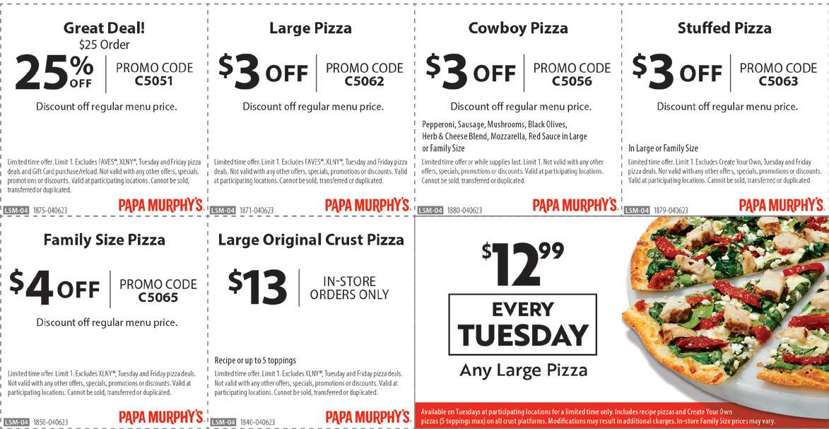 Order at PapaMurphys.com TUESDAY DEAL ANY LARGE PIZZA $12.99 Keizer • 5093 River Rd N • (503) 393-7272