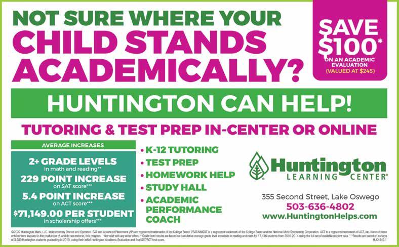 There is no shortcut to greatness. Mastery of skills takes practice. Your child can excel in math and reading … with practice. Millions of families trust Kumon’s practice-based enrichment program to prepare their kids for success in school and beyond. practice makes possibilitiesTM LEARNING CENTERS Preschool – High School Math and Reading Program Most Kumon Centers are independently owned and operated. See Center for applicable terms and conditions. ©2023 Kumon North America, Inc. All rights reserved. Get back to learning this fall with Kumon! Kumon Math and Reading Center of Lake Grove 16063 Boones Ferry Road Lake Oswego, OR 97035 kumon.com/lake-grove 503.635.2647 In-Center and Virtual classes available Your Favorite Local Laundromat! • New Washers & Dryers • Detergent Vending • Sitting & Folding Areas • Pay with Cash, Visa or Fascard App • Sinks for Hand Washing • Soda & Snack Machines • Free WiFi • Security Cameras • Customer Ra e • Lending Library contact@unitylaundromat.com • 971. 416 .7007 OPEN 5AM - 11PM DAILY NOW WITH TWO LOCATIONS TO SERVE YOU CANTERBURY SQUARE: 14305 SW Pacific Hwy (Hwy 99, near Bull Mtn. Rd.) *Fascard Location Code: MACWUR TIGARD PLAZA: 11945 SW Pacific Hwy, Ste.123 (corner of Hall Blvd & Hwy 99, backside of plaza) *Fascard Location Code: JTUPWN Download the Fascard App Today & Earn Points Towards Free Services!* NO NEED FOR COINS! • Check machine availability • See remaining cycle time • Pay using your phone COMMUNITYADVANTAGEMAGAZINES.COM 5