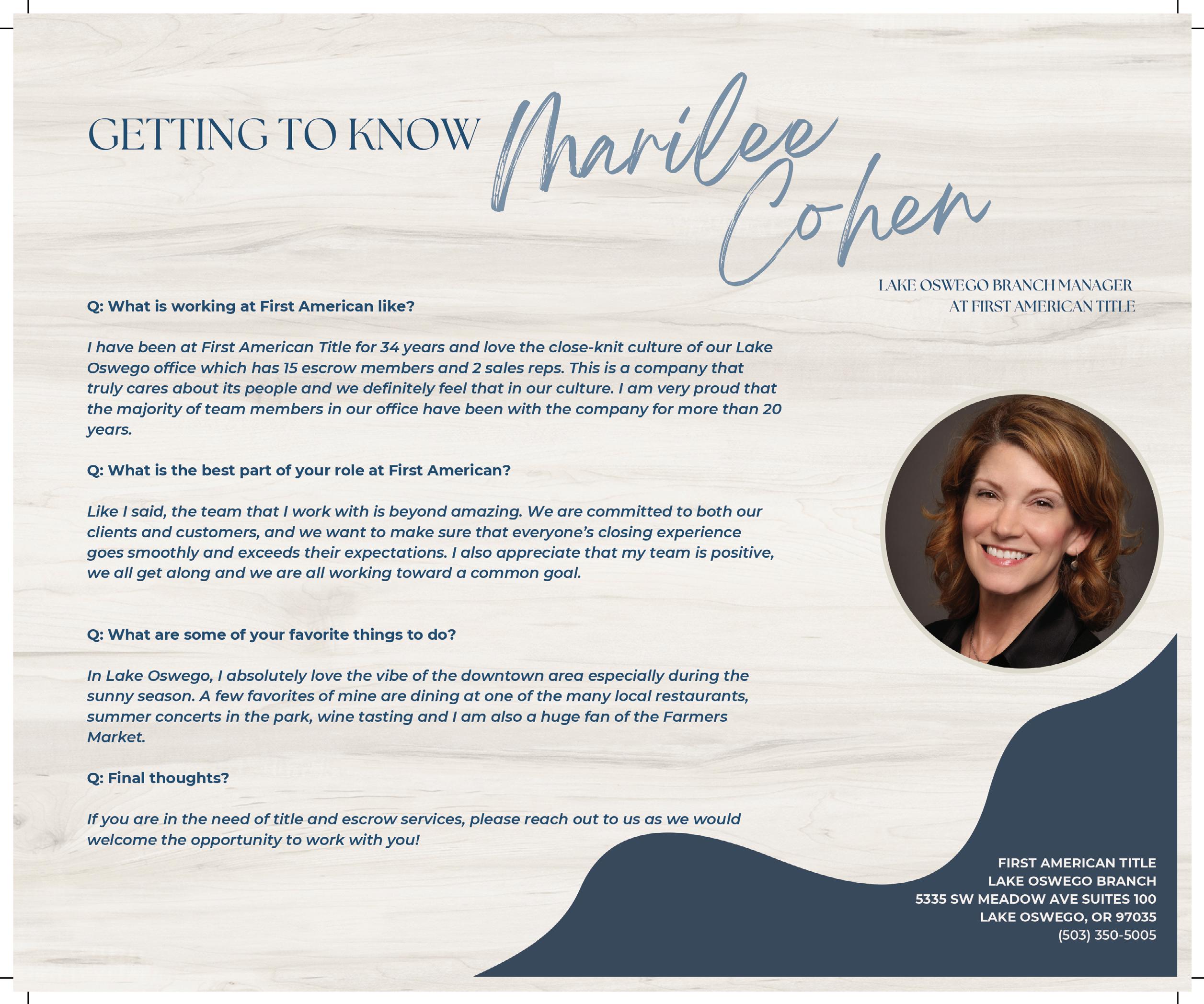 F i r s t A m e r i c a n T i t l e ' s L a k e O s w e g o B r a n c h s h e r e f o r a l l o f y o u r r e a l e s t a t e d s a n d w i l l h e l p m a k e y o u r n e x t e a l e s t a t e t r a n s a c t i o n a s s m o o t h a n d i s s u e - f r e e a s p o s s i b l e !
