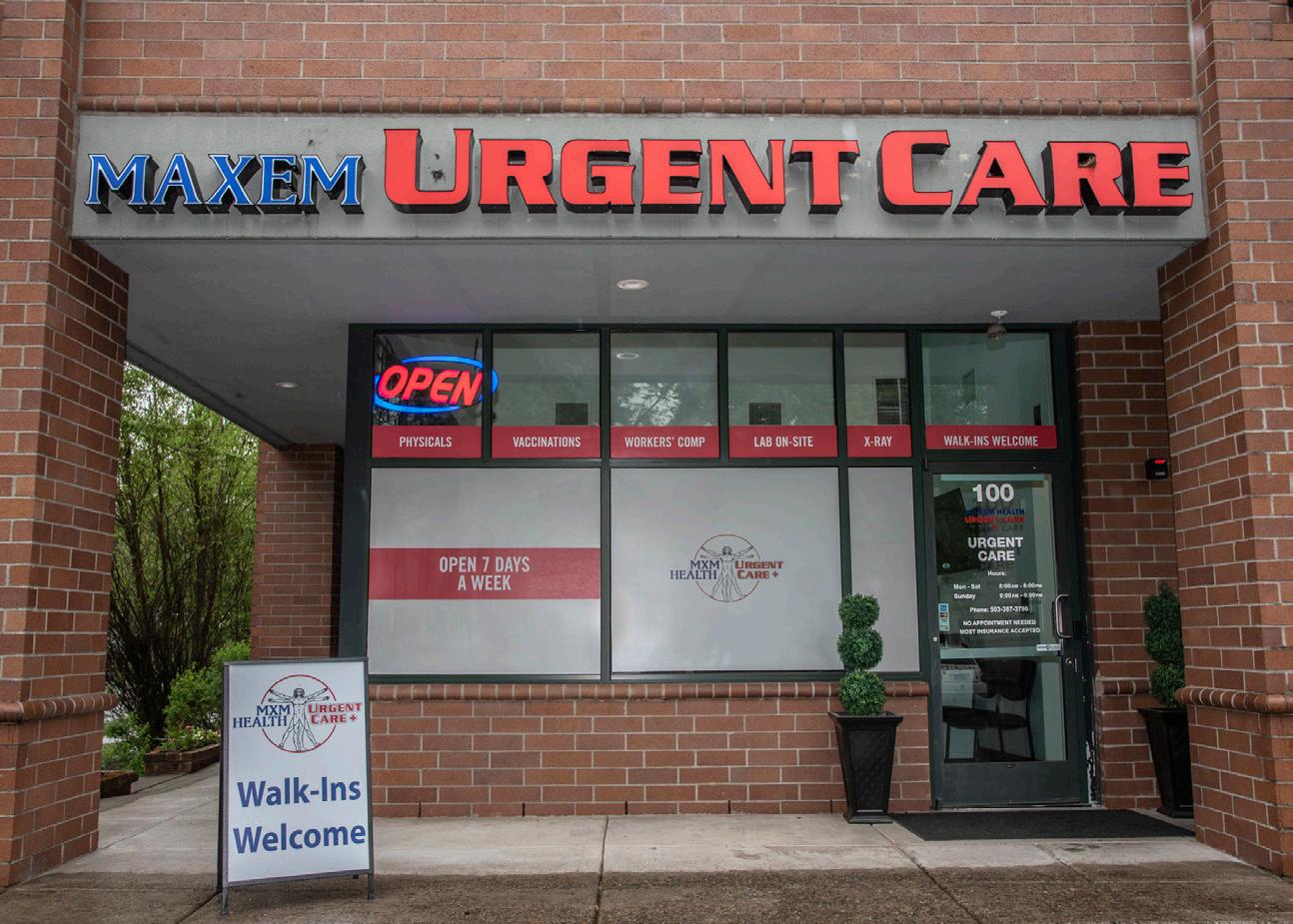NOW OPEN IN LAKE OSWEGO 17437 SW Boones Ferry Road #100 Lake Oswego, OR 97035 503-387-3796 www.maxemhealthurgentcare.com Hours Monday - Saturday: 8-8 Sundays: 9-6 WE OFFER A VARIETY OF SERVICES: Rapid Covid Testing Occupational Health General Illness Diagnostic & Treatment Minor Injury Treatment X-Rays Drug Screens Sports/School Physicals Health & Wellness Exams & More OFFERING ON-SITE DRUG TESTING
