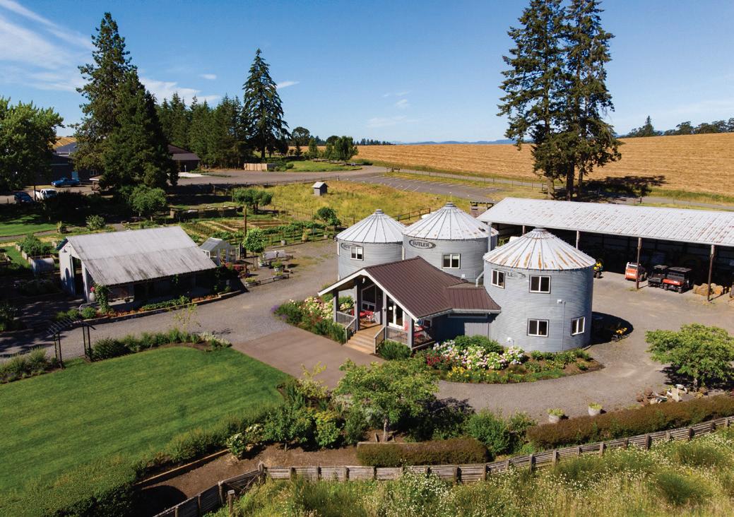 To support the local community, the farm hosts seasonal events throughout the year, like Silobration NW, a twoday family-friendly festival during the summer featuring a chance for Pacific Northwest makers to sell their artisanal goods. The Holiday Light Wine Walk is a fun and festive event for all ages where visitors can walk the farm at night with music and giant light displays accompanied by cups of hot mulled wine or hot chocolate. The event runs from the weekend of Thanksgiving through the weekend before Christmas, and each weekend supports a different local nonprofit.