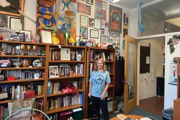 Linfield Theatre’s creative team spared no detail in crafting a ‘60s Parisian set that serves as a canvas for the chaos of this comedic farce. A replica of the Eiffel Tower, sofas with pillshaped cushions and scenic vistas of Paris landmarks bring the audience into the heart of France’s capital for this immersive and hilarious production.