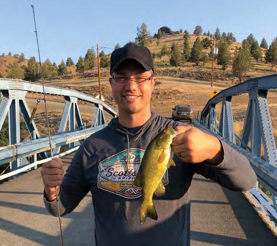 ABOVE: The author’s brother caught his first smallmouth bass while fishing Oregon’s John Day River. BOTTOM: This fish was caught in The Dalles on a white plastic shad imitation. A 15-minute stop yielded three quality bass very close to shore.