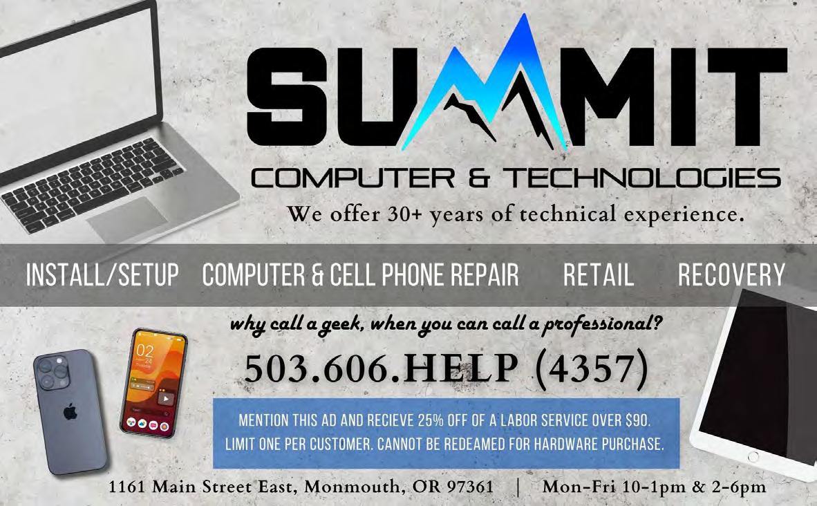 Not Just An Old Fashioned Ice Cream Shop Tea House & Unique Gift Shop Too 226 S. Main Street • (503) 877-7590 • independenticecreamshop.com We’re Open, Tues - Thurs: 11-8pm — Fri - Sat: 11-9pm — Sun: 12-8 Powered by a Professional Truck Mounted Steam Cleaner Upholstery Specials Couch $55 • Love Seat $45 Recliners $40 Family Owned & Operated Since 1995 Call or Text Josh Today at 503.956.6148 www.mightycleanonline.com Josh Vorderstrasse Owner/Operator Satisfaction Guaranteed! FOR ALL YOUR CARPET CLEANING NEEDS We Specialize In: • Pet Stain/Odor Problems • Deodorizer • Stain-Guard • Tile & Grout • Deep Soil Extraction $18995 ANY SIZE TWO LEVEL Not valid with any other offer. Offer valid on homes only. Expires 10/15/23 $13995 ANY SIZE ONE LEVEL Not valid with any other offer. Offer valid on homes only. Expires 10/15/23 WE CLEANALSOTILE & GROUT COMMUNITYADVANTAGEMAGAZINES.COM 7
